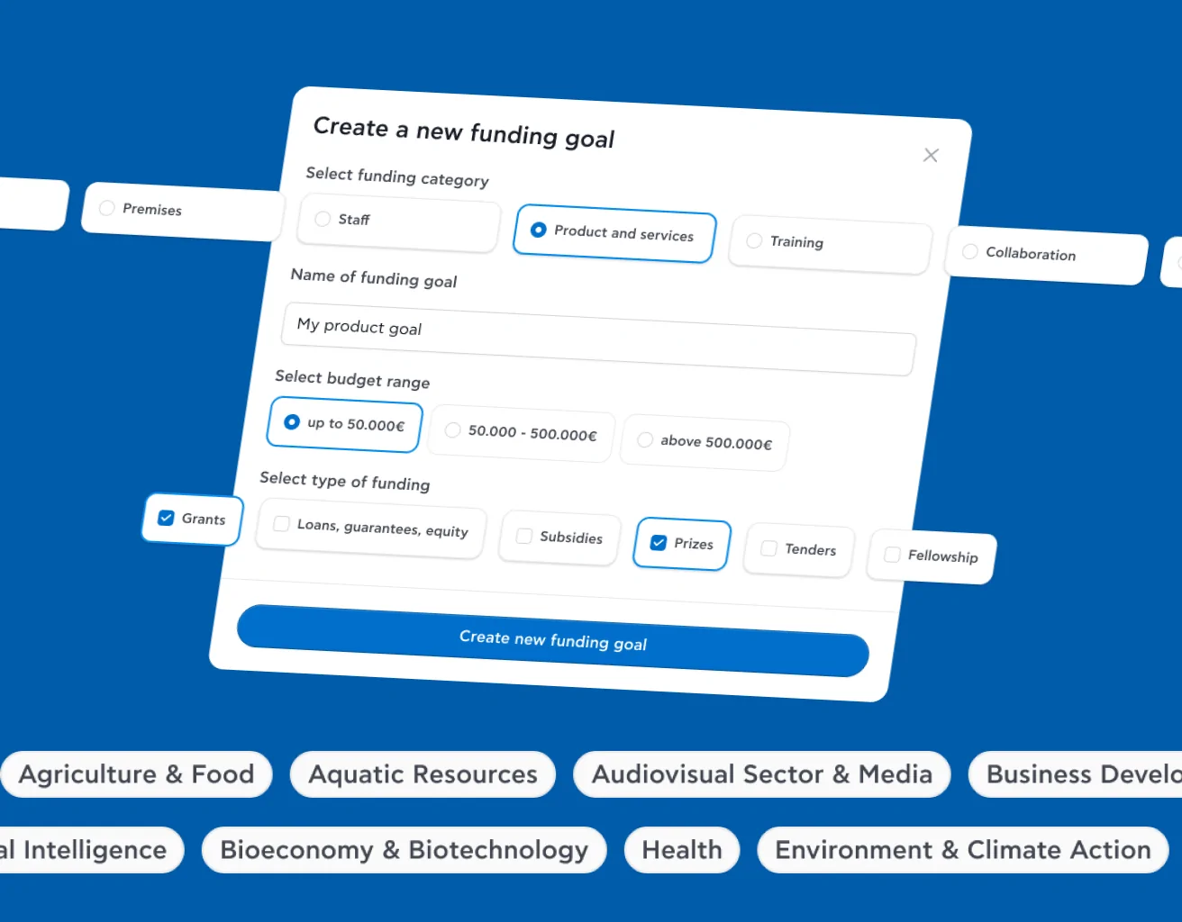 Focus on the opportunities that matter most by setting your funding goals. Designed for simplicity and efficiency, goals unlock customized content and secure EU funding faster.